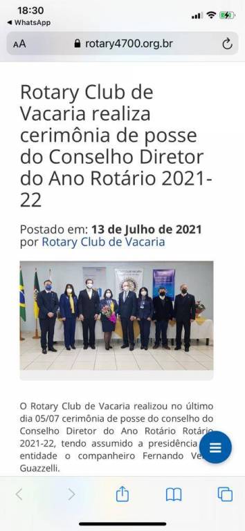 O Rotary Club de Vacaria realizou no último dia 05/07 cerimônia de posse do conselho do Conselho Diretor do Ano Rotário Rotário 2021-22, tendo assumido a presidência da entidade o companheiro Fernando Verdi Guazzelli.