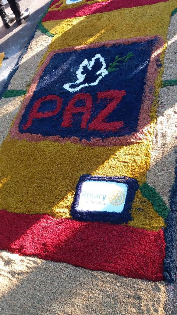 E visando despertar a comunidade para uma vida em paz e sem conflitos, o Rotary Club de Vacaria participou hoje, 20/06, das comemorações de Corpus Christi, com a elaboração pelos companheiros Elisete Orsi Fernandes e Antonio Luís Langone Noya de um tapete em serragem colorida, o qual localizado na Rua Ramiro Barcelos.