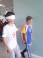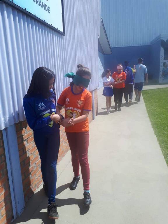 Os jovens participantes desenharam com os pés, caminharam com os olhos vendados, jogaram balões com as pernas imobilizadas e outros com os braços imobilizados.
